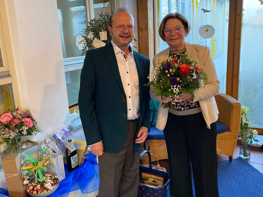 Im Namen der Kirchenverwaltung der Pfarrgemeinde Lappersdorf sprach Josef Gintner. Er blickte auf die lange Geschichte des Kindergartens in der Trägerschaft der Pfarrei zurück, an der Johanna Broja über drei Jahrzehnte mitgewirkt hat. „Liebe Johanna, du hast über 1.000 Kinder hier kennengelernt und gefördert. Auch als du ab 2000 mit der Aufgabe als stellvertretende Leiterin begonnen hast, hast du weiterhin mit Leidenschaft in den Gruppen gearbeitet“, so Gintner. „Bereits ab 2014 warst du bereit, Verantwortung als Leiterin zu übernehmen. Deine routinierte und empathische Art, dein Weitblick und dein kooperativer Führungsstil waren ein Glücksfall für den Kindergarten. Für all das danke ich dir von Herzen und wünsche alles Gute für deinen kommenden Ruhestand.“