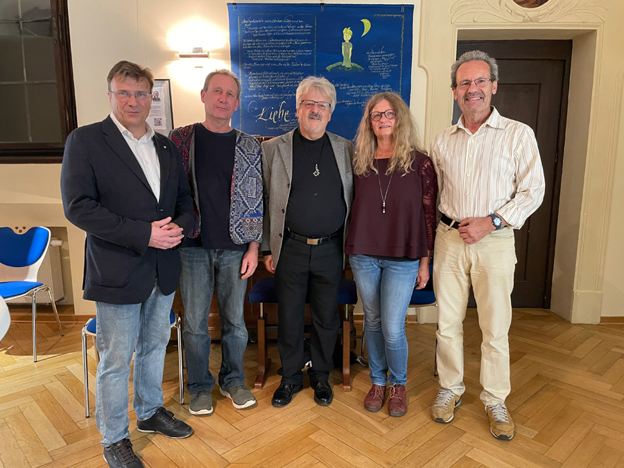 „Mit der Kalligrafie-Ausstellung von Johann Maierhofer erweitern wir die Themenvielfalt unserer Galerie St. Klara, denn es geht uns um die Vielfalt der Künstler und um eine große Bandbreite der Kunst“, so Michael Eibl, Direktor der Katholischen Jugendfürsorge Regensburg, bei der Ausstellungseröffnung „Zwölf“. Die Vorstellung des Künstlers übernahm Rudolf Rappenegger, Restaurator und Kirchenmalermeister sowie Leiter der Restaurierungswerkstätten des Diözesanmuseums. Musikalisch begleitet wurde der Abend von Liederpoet Fredman und es gab kleine Leckerbissen und Getränke von der labora gemeinnützige GmbH, Regensburg