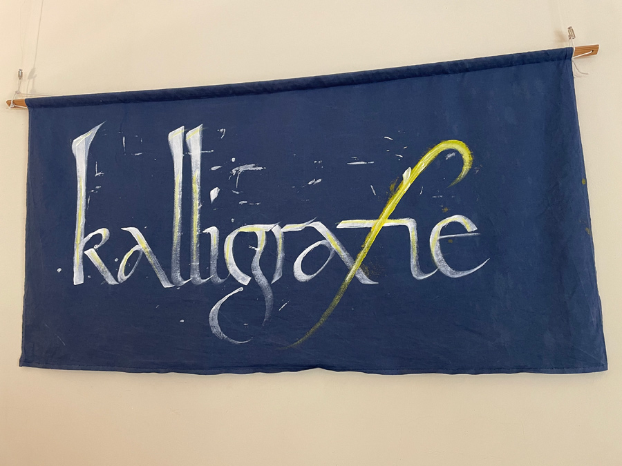 „Über Jahre hinweg sprachen mich immer wieder Texte an, die ich „sinnfrei“ kalligrafierte. Irgendwann merkte ich, dass alle auf hochwertigem Papier und in einem gleichen Format entstanden sind und irgendwann war es dann ein fertiges Sujet. Als die Ausstellung dann vereinbart war, legte ich die Reihenfolge fest. Das alleine war schon ein kreativer Akt. Ich verteilte die Arbeiten, und nach einer viertel Stunde war mir, als ob die Arbeiten sich ihre Reihenfolge selber aussuchten“, so Johann Maierhofer zu der Entstehung seiner Kalligrafie-Kunstwerke. Zum Ausstellungsort ergänzte er: „Die Galerie St. Klara beherbergt zum einen Kunst und ist zum anderen vom geistigen Hintergrund der KJF ideal geeignet für die Inhalte dieser Arbeiten.“