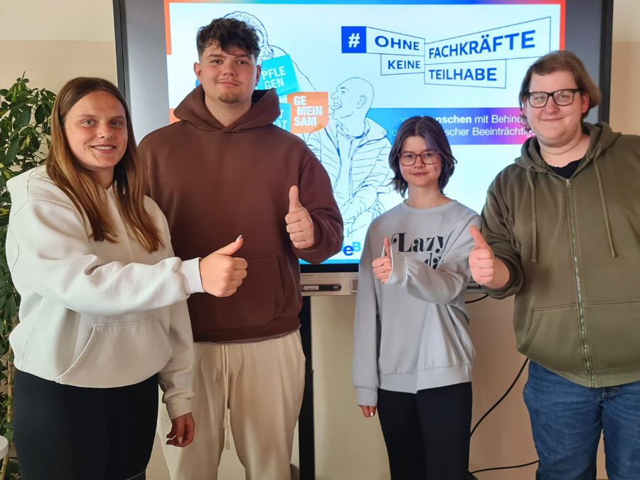 Die KJF bildet an zwei Standorten Heilerziehungspflegerinnen und Heilerziehungspfleger aus: an der Fachschule für Heilerziehungspflege in Abensberg und in Erbendorf. Auch beide Schulen beteiligen sich mit ihren Schulleiterinnen sowie Schülerinnen und Schülern an der Aktionswoche. Die angehenden Fachkräfte Olivia, Jakob, Sophie und Yannick machen über Social Media deutlich, welche Bedeutung ihr zukünftiger Beruf hat: „Teilhabe bedeutet für uns die Frage, wer mitmachen möchte und nicht wer mitmachen kann.“ Gemeinsam wollen sie ein Zeichen setzen und auf das Thema aufmerksam machen.