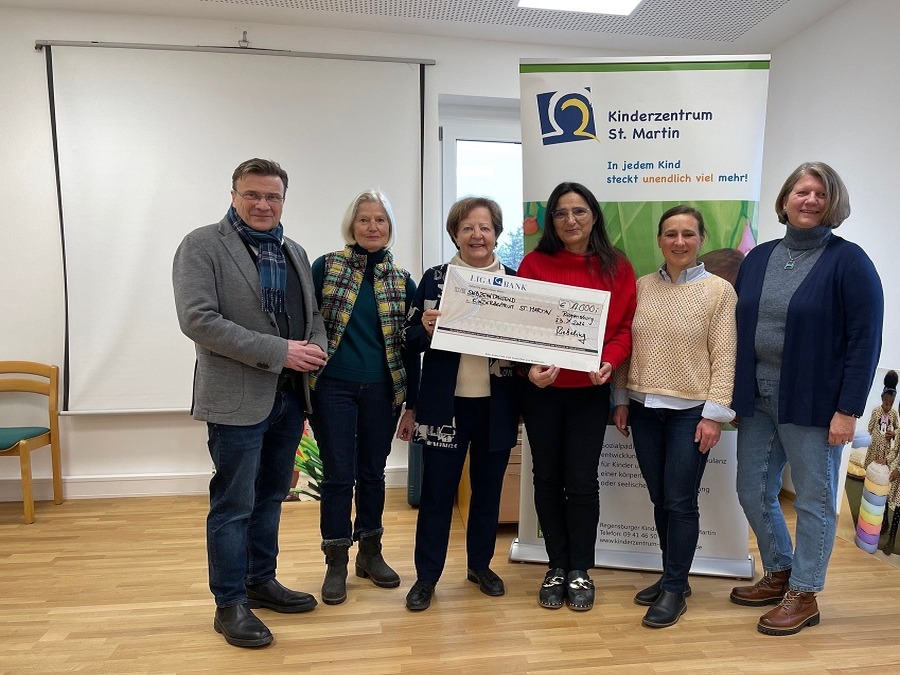 Aktion Sonnenschein Regensburg e. V. spendet großartige 17.000 Euro an das Kinderzentrum St. Martin der Katholischen Jugendfürsorge (KJF) Regensburg. Zur offiziellen Spendenübergabe hießen die ärztliche Leiterin Dr. Christina Kutzer und Verwaltungsleiterin Astrid Lamby Dipl. Kffr. Sissi Riebeling mit zwei aktiven Mitgliedern des Fördervereins – Christl Fronhofer und Birte Schramm – sowie KJF-Direktor Michael Eibl herzlich willkommen. Sissi Riebeling ist seit über 40 Jahren die Vorsitzende des Fördervereins. KJF-Direktor Michael Eibl ist dankbar für ihr wertvolles Engagement: „Sissi Riebeling und ihr tatkräftiges Team ermöglichen mit ihrem unglaublichen Einsatz viele qualitätsvolle Behandlungen und Therapien für Kinder mit Behinderung. Das ist vorbildliches bürgerliches Engagement!“